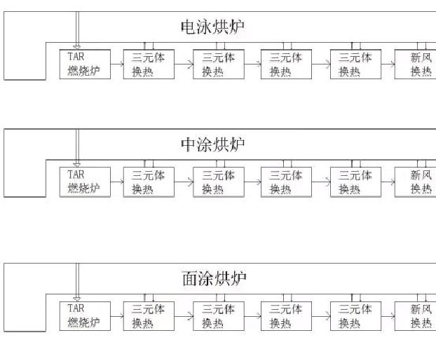 TNV系统由三大部分组成:废气预热及焚烧系统、循环风供热系统、新风换热系统。